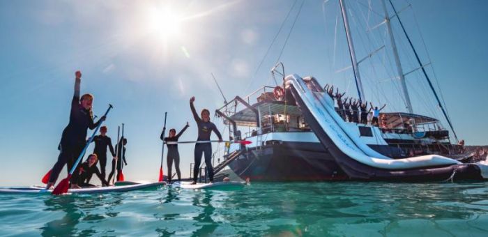 The final day starts with a singing wake-up call by one of the crew at 6.00am as we set sail to our final location where there is more water sliding and diving platform action to be had. You can also have a go at paddle-boarding, and to play on the lilypad before everything is packed away. The anchor is raised at approximately 10:45am and then back to Airlie Beach for arrival at approximately 12pm, but not before a thrill ride across the Whitsunday passage as this stretch of water offers the most open and fun options for Clipper’s massive sails. That’s the end of the trip, but it’s not the end of the service we offer because we have an exclusive after-party organised where our guests thanks to our partners Beaches and Mama Africa's night club. This is your chance to have one final hoorah with our crew and enjoy VIP discounts on food and drinks. This rounds off the trip and sends off our passengers with a smile to their next destination.